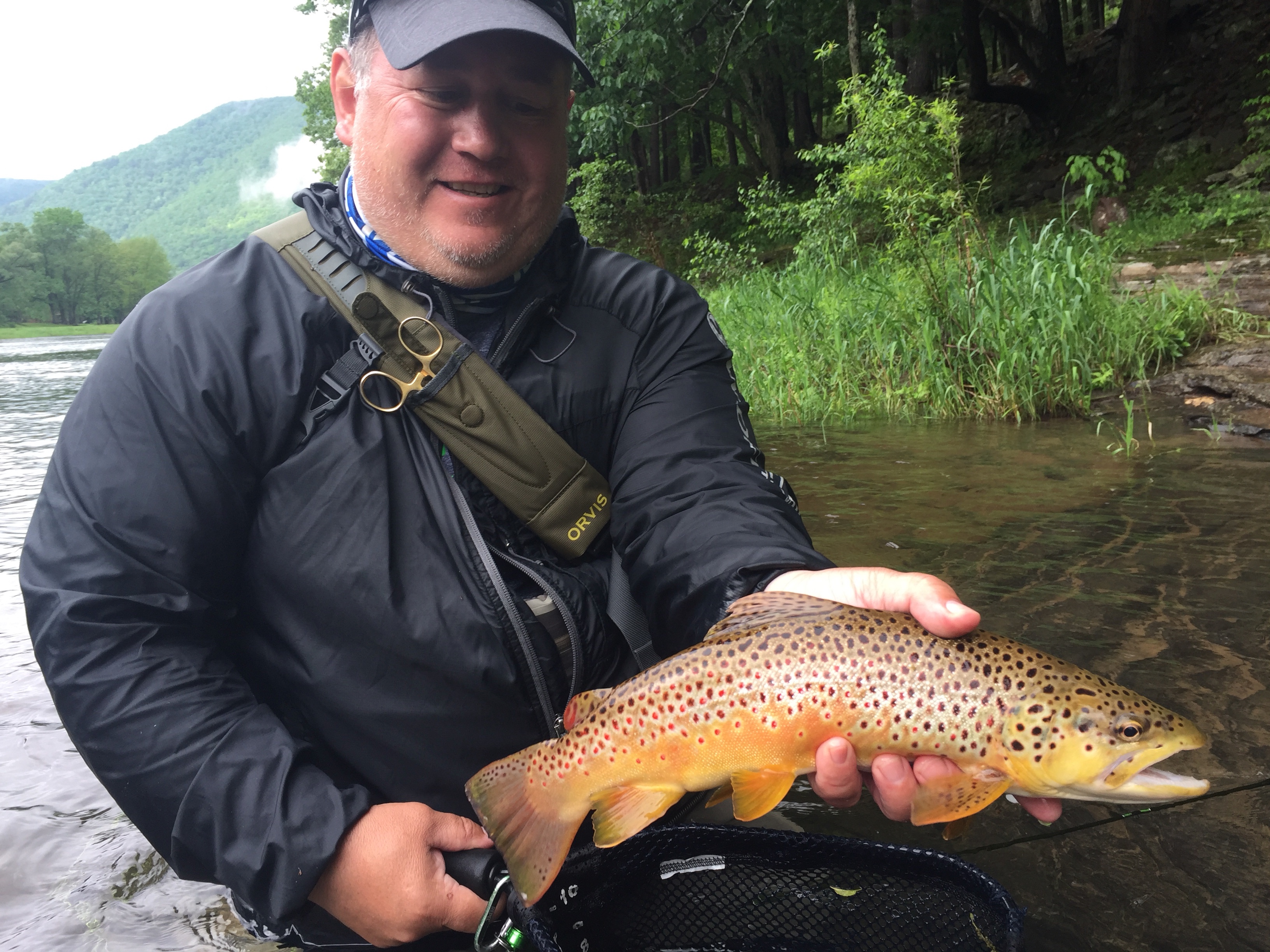 My son and I had heard the stories about the big German strain brown trout lurking in the waters of Pine Creek so we decided to give it a shot. The fish are stocked not wild trout but let me tell you that when you hook into one you are in for one wild ride! Personally, I’m a small flow guy preferring the challenge of hooking up with small native bookies in tight quarter. That’s my fly fishing heritage. That being said, the prospect of catching a 20 or even 30 inch brown trout puts a smile on my face!
