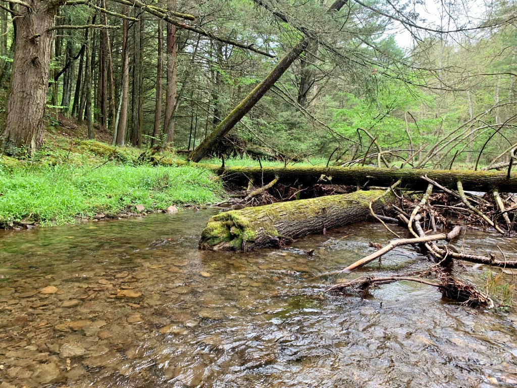 I had planned to fish the well known brook trout fishery Kettle Creek but with the holiday weekend the popular creek was teaming with anglers at every access point and areas in between. I enjoy solitude when I fish so I started looking at my phones map app for blue lines running into Kettle Creek.